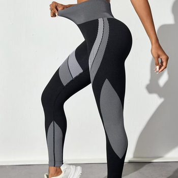 Yoga calças de cintura alta das mulheres respirável sem costura Color-Block Esportes Leggings longas listras pretas apertado-encaixe sólido